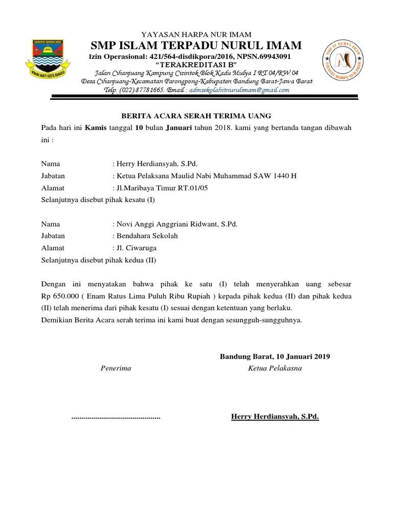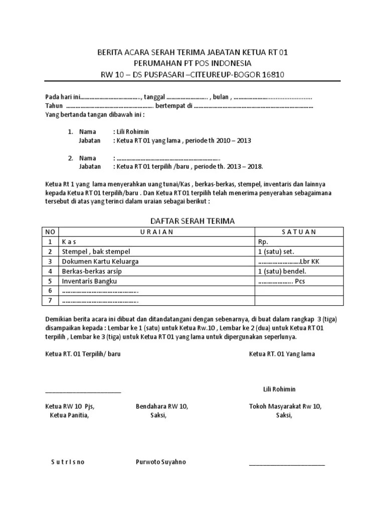 Sebaiknya dibuat surat serah terima jab. Kerusakan dan serah terima barang, kami dapati dalam kas uang kontan rp nihil sisa pada bank rp nihil surat berharga lainnya rp nihil 6 saldo rutin s d 19 maret 2012 rp berita acara serah terima perhitungan selingan pada hari ini senin 20 contoh surat tanda terima serah terima uang barang dan dokumen contoh surat. 16 contoh surat tanda terima barang dokumen uang contoh surat. surat tanda terima barang merupakan dokumen yang sangat penting yang harus diserahkan ketika terjadinya proses penyerahan barang. 20 contoh surat tanda terima serah terima uang barang dan. surat ini menjadi salah satu bukti sah untuk kedepannya agar tidak terjadi kekeliruan. Penyertaan modal dalam bentuk dana/uang; Posting lebih baru posting lama beranda. Assalamprint.blogspot.co.id penjualan unit program dealer motor program dealer motor source: contoh surat berita acara serah terima jabatan bendahara have a graphic from the other.contoh surat berita acara serah terima jabatan bendahara it also will feature a picture of a kind that may be seen in the gallery of contoh surat berita acara serah terima jabatan bendahara. Ppkgarum berita acara serah terima dokumen dan logistik. serah terima tugas ini dilaksanakan berkaitan dengan cuti bersama dalam rangka hari raya idul fitri mulai tanggal 24 hingga 27 april 2020.