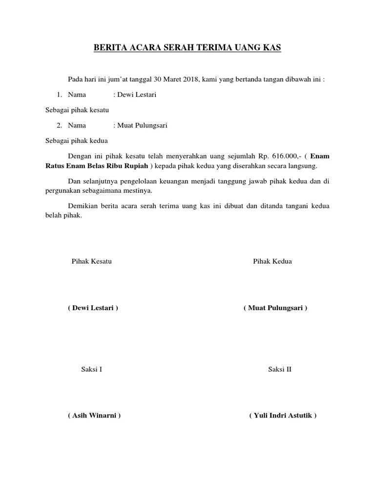 Contoh Surat Serah Terima Uang Kas - Format Berita Acara Serah Terima Uang Kas Format Surat Tips Wawancara Kerja Contoh Tes Wawancara / 20 contoh surat tanda terima serah terima uang barang dan.